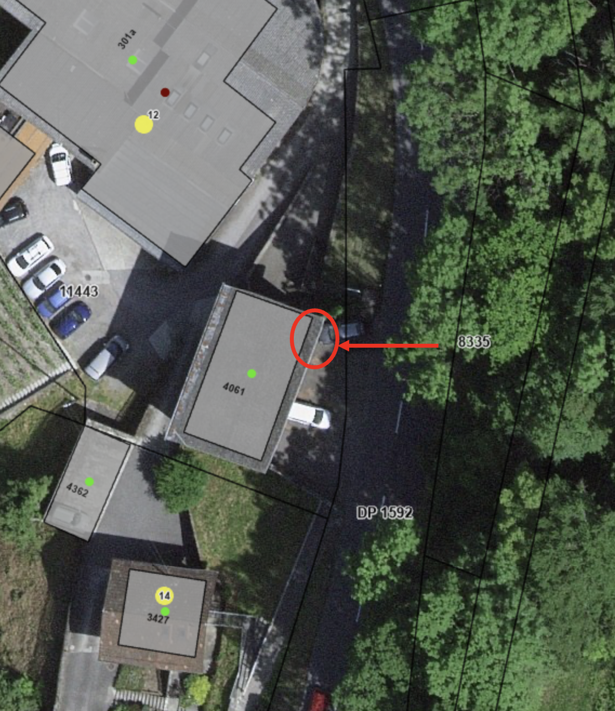 Place de parc devant la 1ère vitrine depuis Ollon (parallèle à ma voiture)